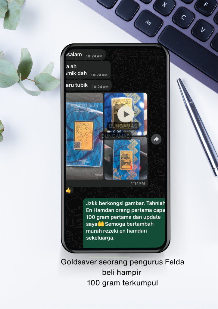 Saya dealer aktif yang boleh guide anda untuk capai matlamat simpanan anda. Anda nak simpan emas untuk kahwin, untuk haji, untuk dana persaraan, dana pendidikan anak, untuk pelaburan, saya ajarkan sampai pandai. Lihat hasil tabungan penyimpan emas di bawah dan hasil tabungan saya sendiri.